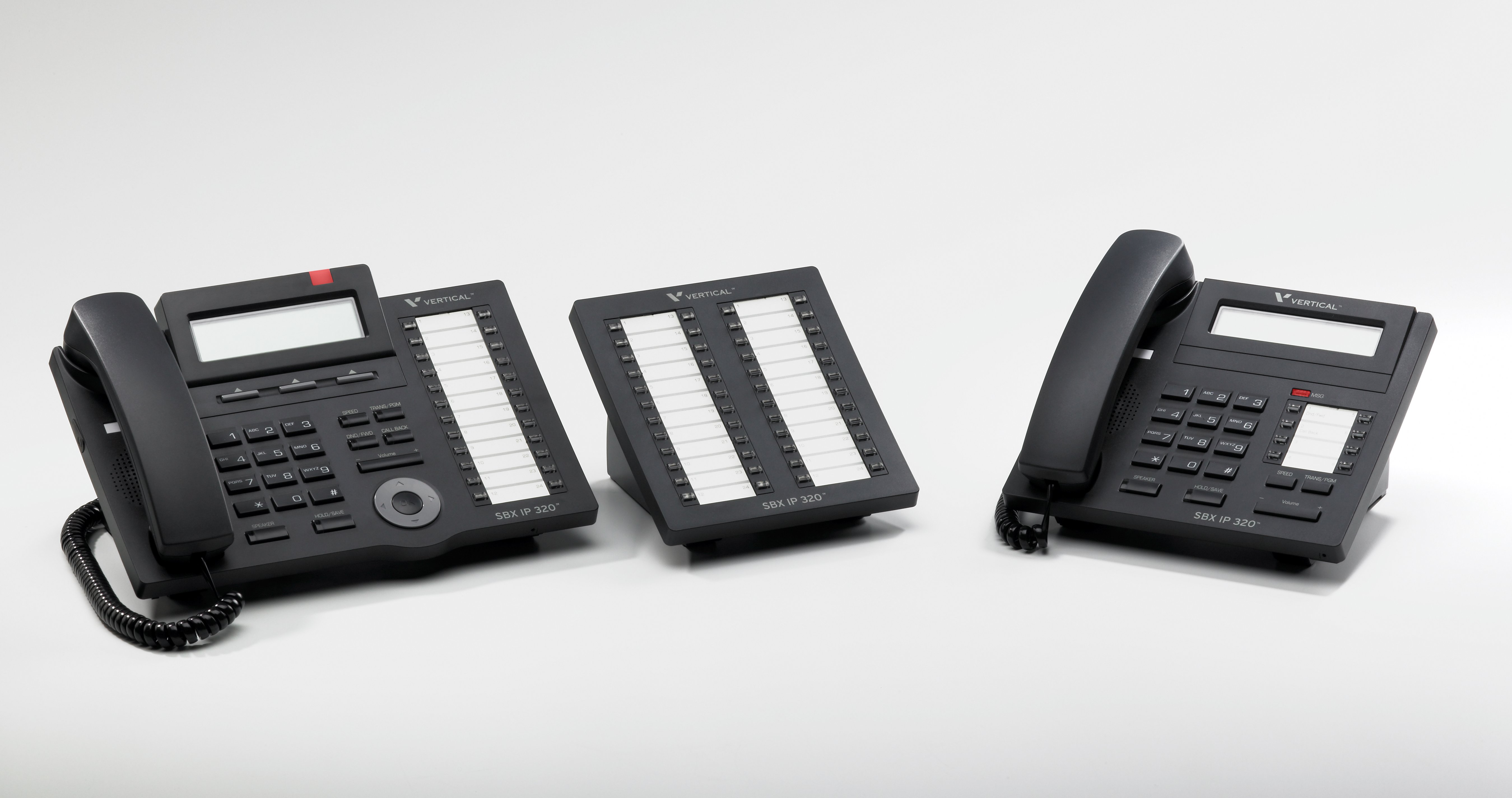 SBX IP320 24 button phone set, console with additional buttons for receptionist, and 8 button phone set |